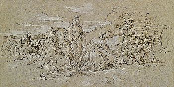 Schilf schlagende Bäuerin mit Kiepe auf dem Rücken